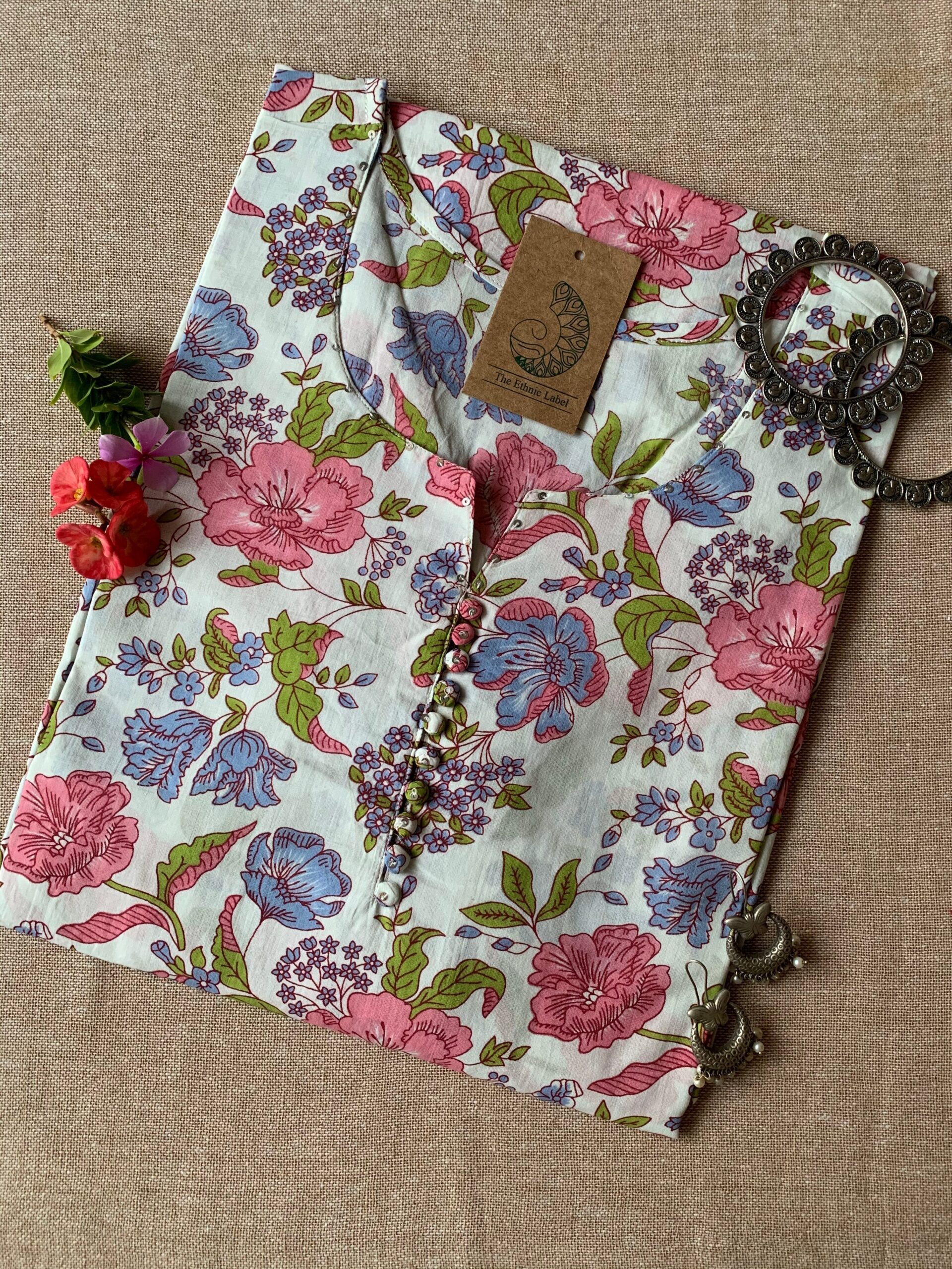 “Bageecha” Hand Block Printed Buttoned Cotton Kurta – M